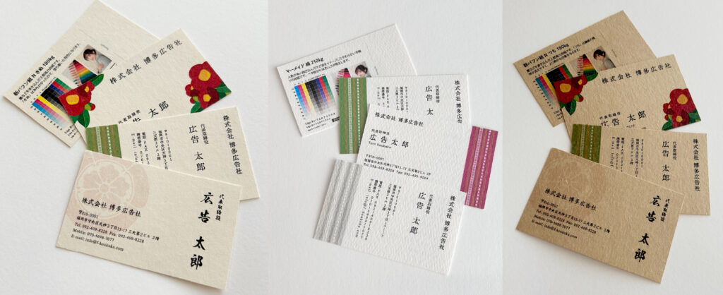 高級名刺印刷デザイン専門店の「博多広告社」では、エレガントな名刺デザインを引き立てる高級紙や特殊紙を多く取り揃えています。エレガントな印象の名刺作りにおすすめの用紙をご紹介します。