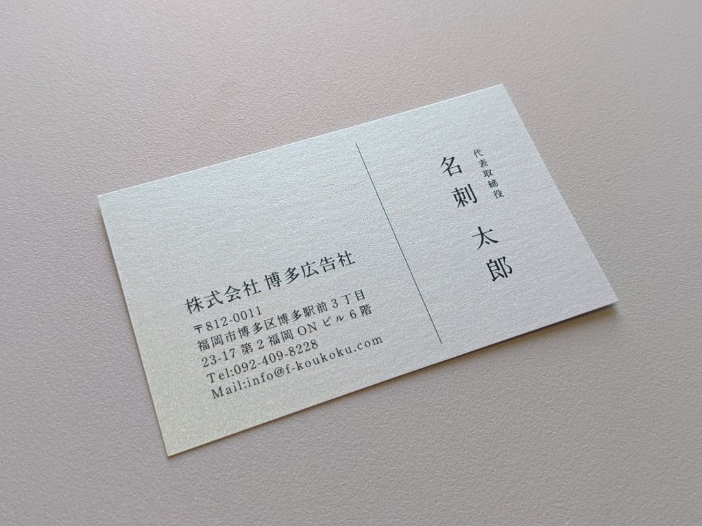 手に取った瞬間に違いが感じられる高品質の社長名刺は、会社の信頼性や価値を高めるのに役立ち、会社の特色や社長の人柄も効果的に伝えてくれます。会社の代表に相応しいプレミアムな社長名刺の作成は、博多広告社にお任せください。